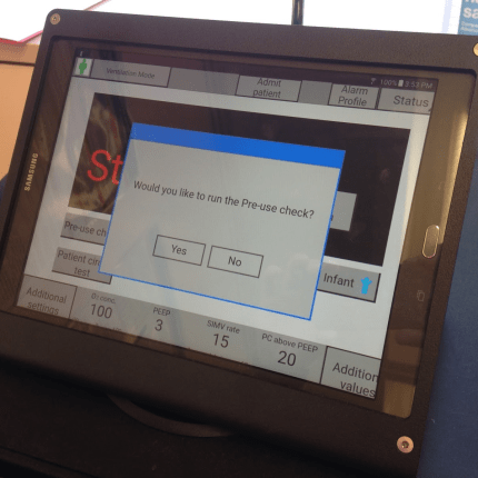 The next step in our project was building the physical (right) and software (below) simulations of the ventilator. We used the task analysis and contextual inquiry to create accurate simulations of the ventilator, as well as to modify our simulations to best fit our study needs.